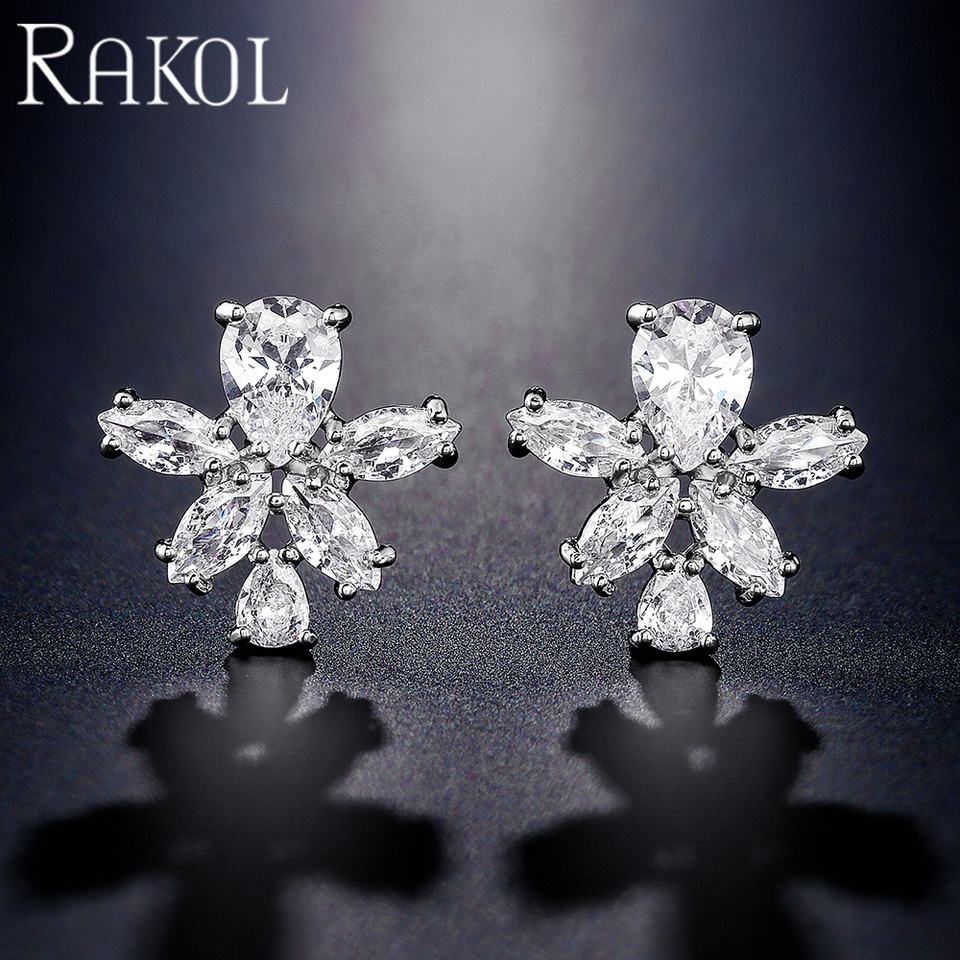 name or words:18k Gold Plated Cubic Zirconia Flower Stud Earrings RAKOL EP1169