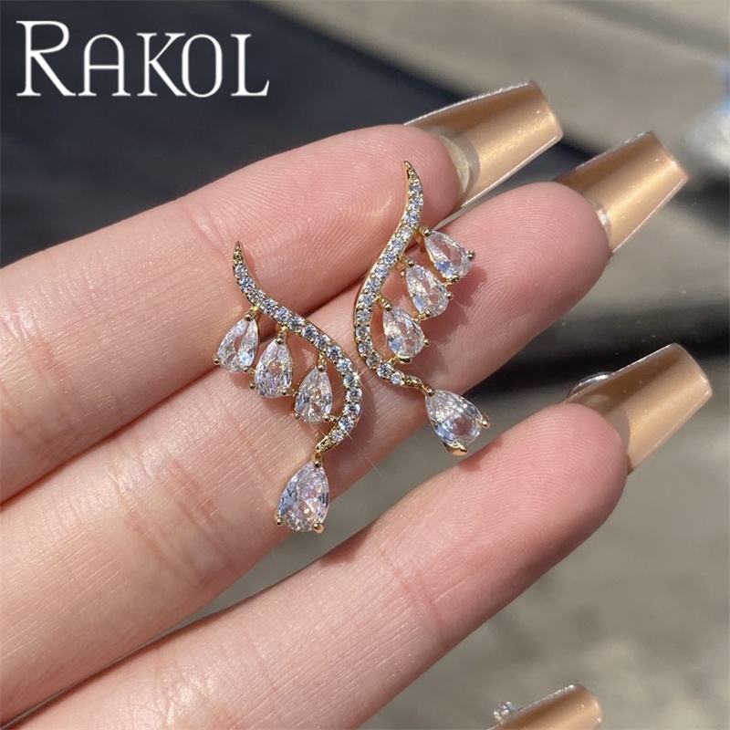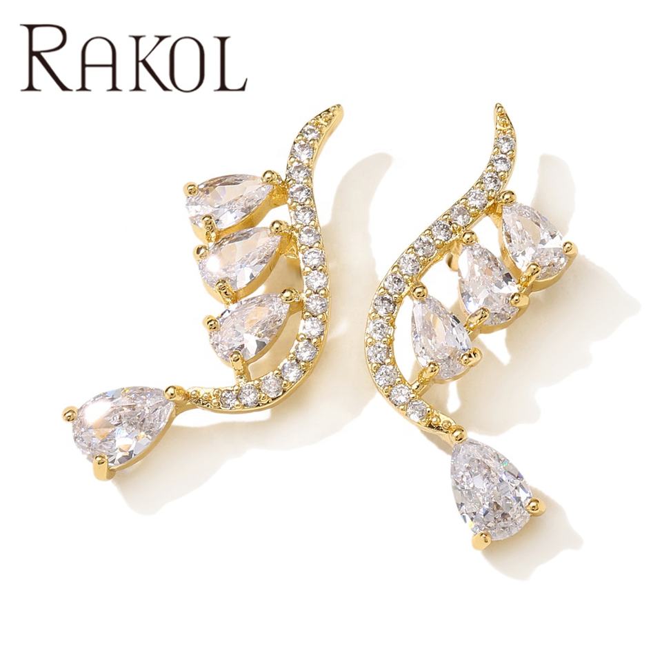 RAKOL EP2890 Nouveau Design Géométrique Grande Aile Luxueux Plaqué Or Zircon Boucles d'Oreilles de Noël pour Femmes Livraison