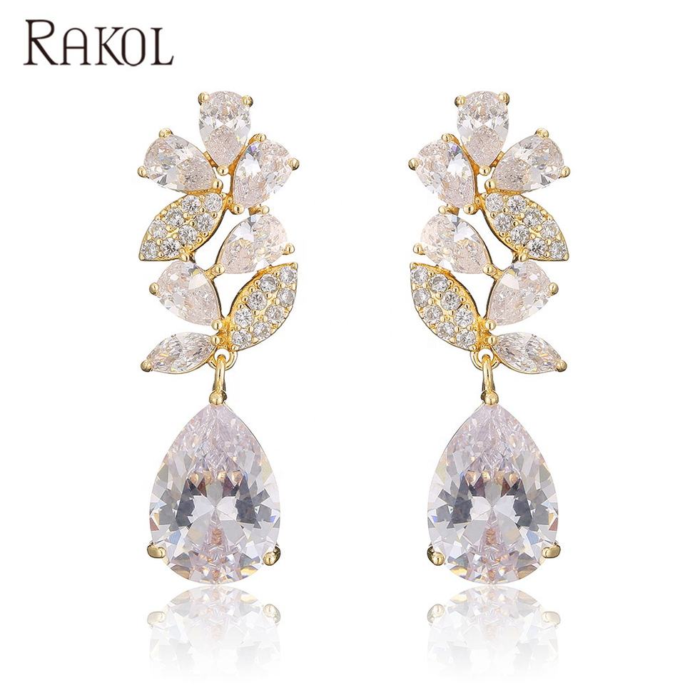 RAKOL EP5020 Flower Shape Water Drop Cubic Zirconia Charm Stud Earrings Female Jewelry Best Selling