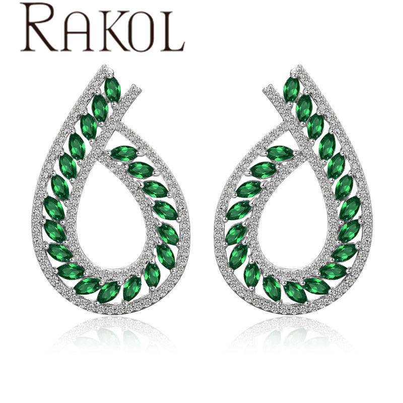 name or words:RAKOL EP631 Korean Earrings for Women Cubic Zirconia Silver Jewelry