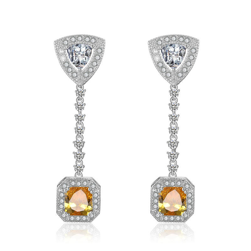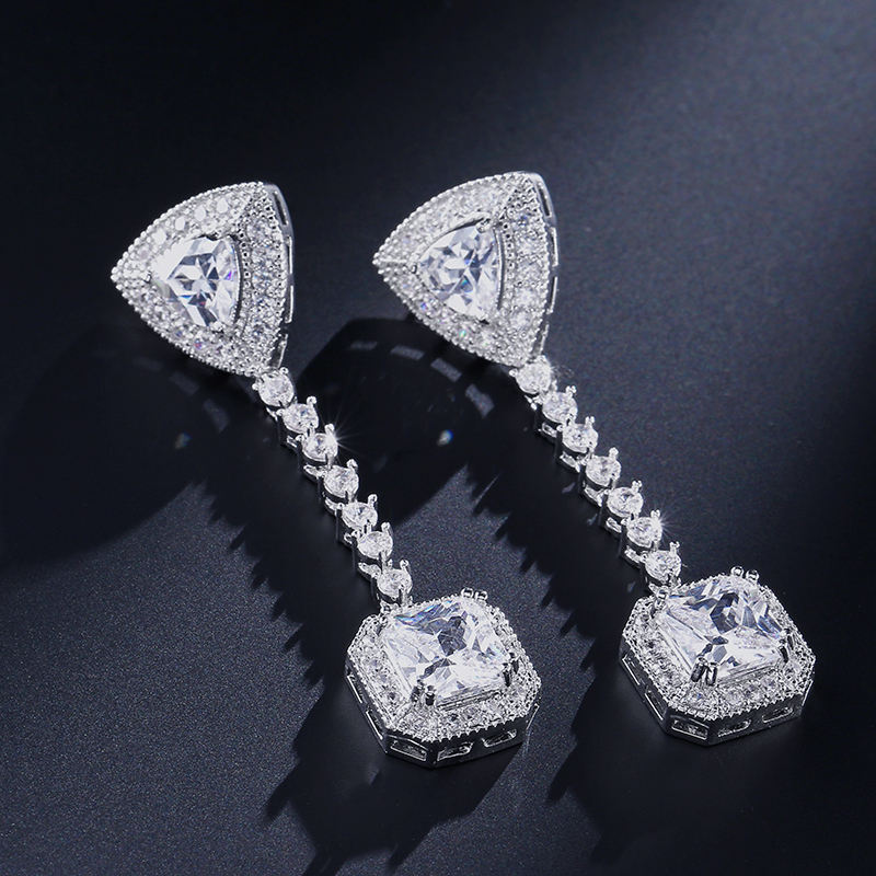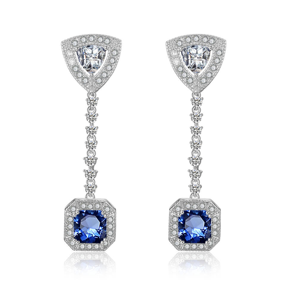 Keywords:Zirconia CZ Long Drop Silver Earrings
