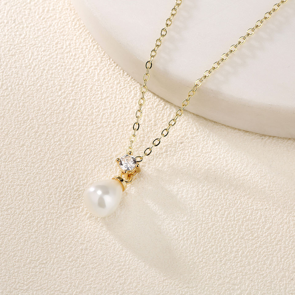 Collier pendentif en perles RAKOL NP5091, design simple, argent sterling plaqué or 18 carats, collier quotidien pour femmes