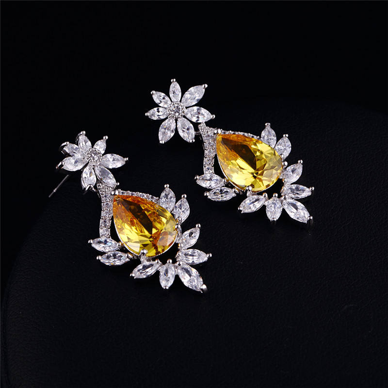 RAKOL SP143 Collier de luxe multicolore avec strass, ensemble de pendentifs en pierre goutte d'eau pour femmes