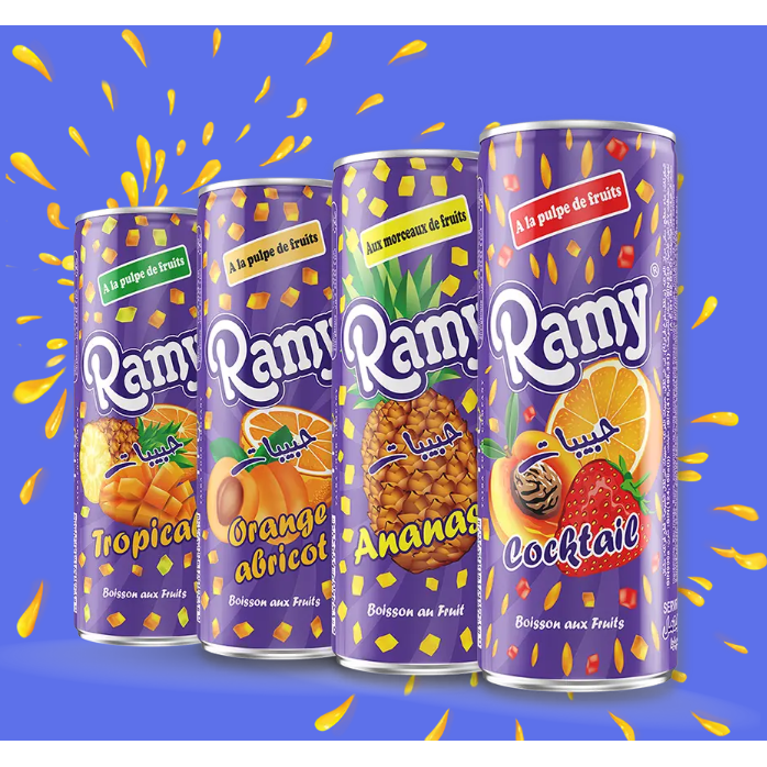 RAMY Sweet Flavored 240ml Juice Pulp Can Box Natural Halal Certified Variety Mango Orange Pineapple Lemon Soursop Melon Box