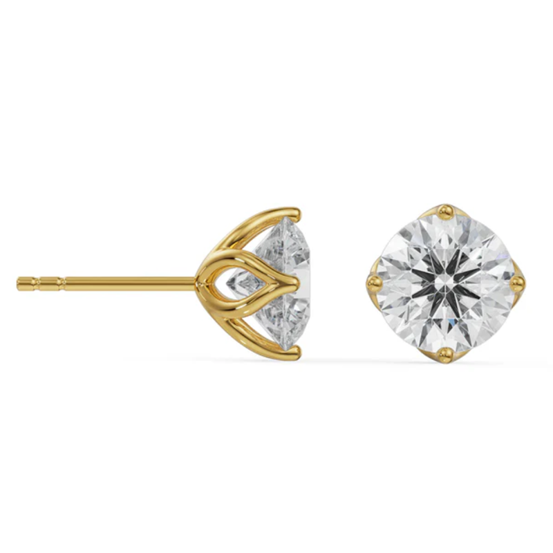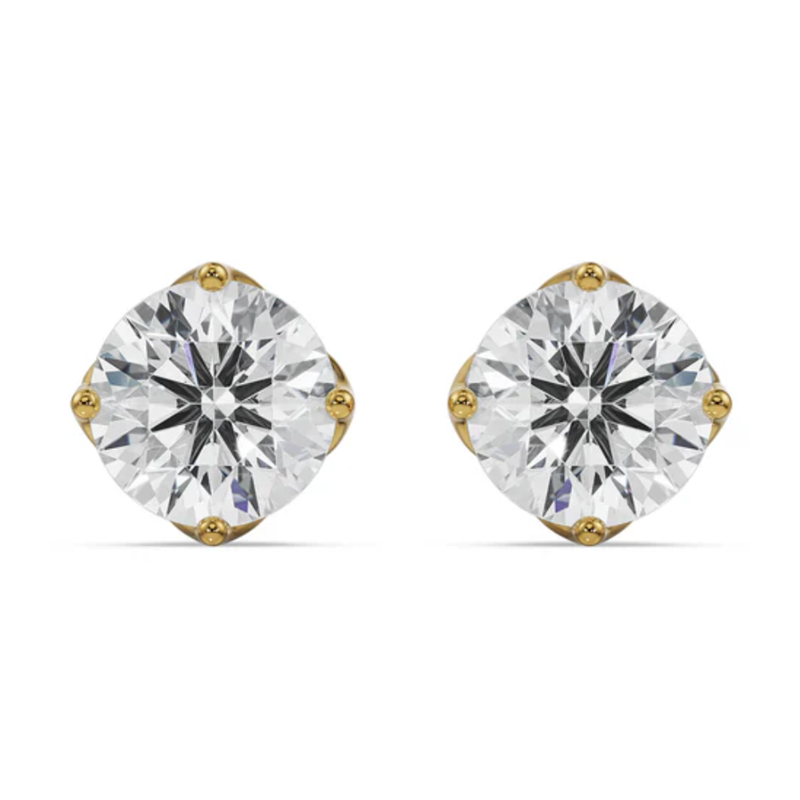 Boucles d'oreilles clous rondes en diamant de laboratoire pour femme, en or jaune 14 carats, clarté VVS, couleur E, certifiées, tendance, pour soirée, par RATAN JEWELS