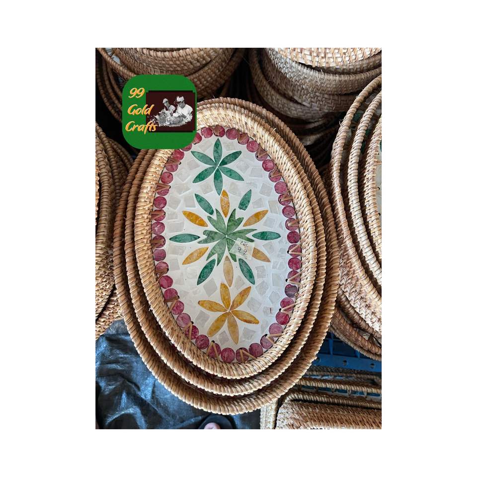 PLATEAU DE DÉCORATION DOMESTIQUE TISSÉ EN ROTIN CONCEPTION MATÉRIEL ÉCO FAIT MAIN POUR LE STOCKAGE ET LE SERVICE DANS UN USAGE QUOTIDIEN