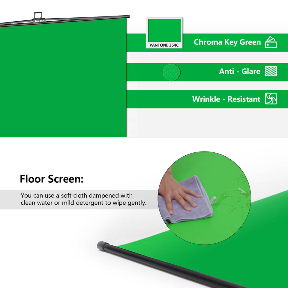 RAUBAY Écran vert pliable - Fond de scène FloorFlex avec extension au sol 7x7x7 pieds - Fond de scène Chroma Key rétractable portable