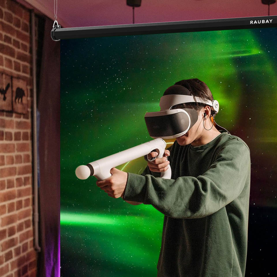 RAUBAY Écran vert rétractable - 59,8" x 86,6" - Fond d'écran mural pliable