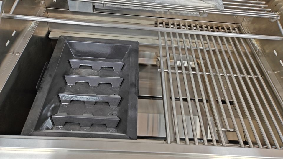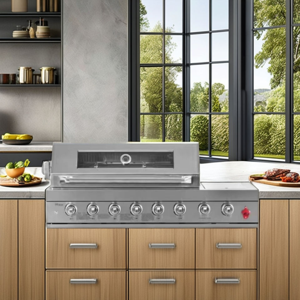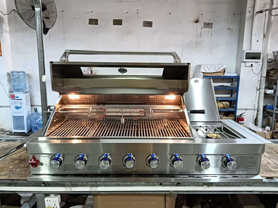 Barbecue RAYLIN pour extérieur, utilisation en jardin, intégré, en acier inoxydable 304, gaz naturel et charbon de bois, avec brûleur latéral et éclairage LED