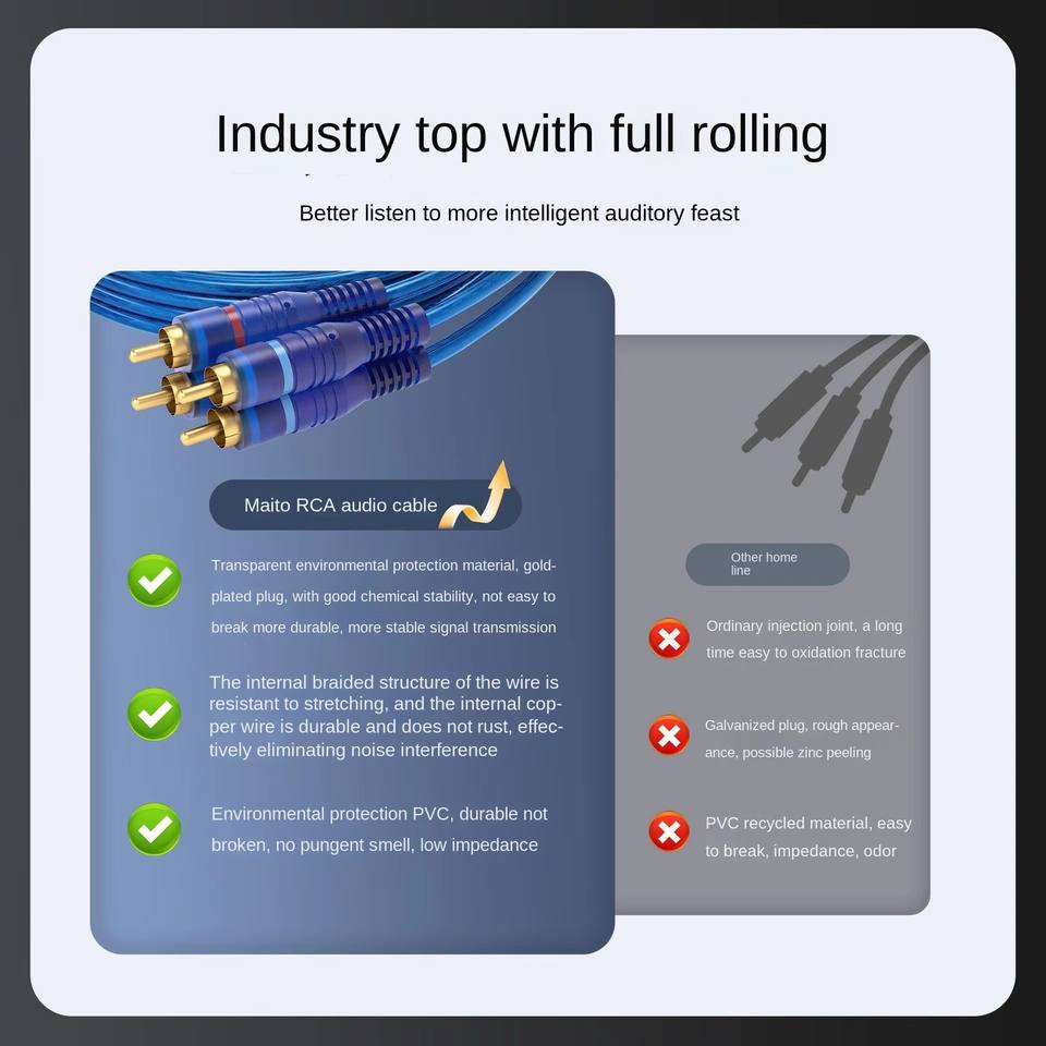 Câble en cuivre tressé RCA pour amplificateur audio de voiture, gaine en PVC, pour système home cinéma, stéréo numérique, Hi-Fi