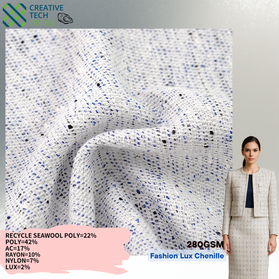 RCO-2B2374 Recycle Seawool PET/Poly/AC/R/NY/LUX=22/42/17/10/7/2 Y/D Fashion Lux Tissé Lourd 280GSM Durable Recyclé