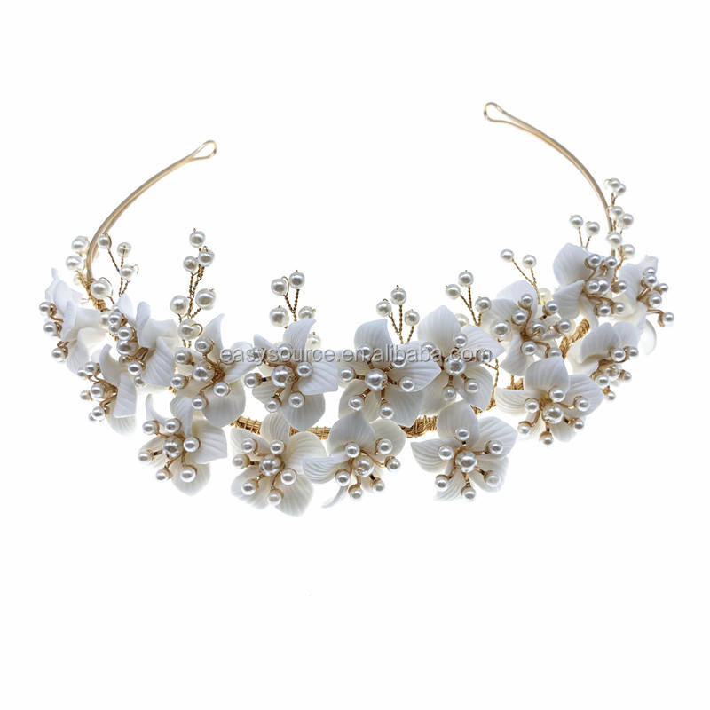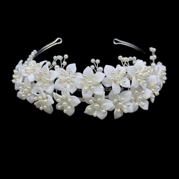 Csja — accessoires de cheveux en porcelaine, bandeau de mariage, ornements de perles, fleurs, Design Unique, RE3959