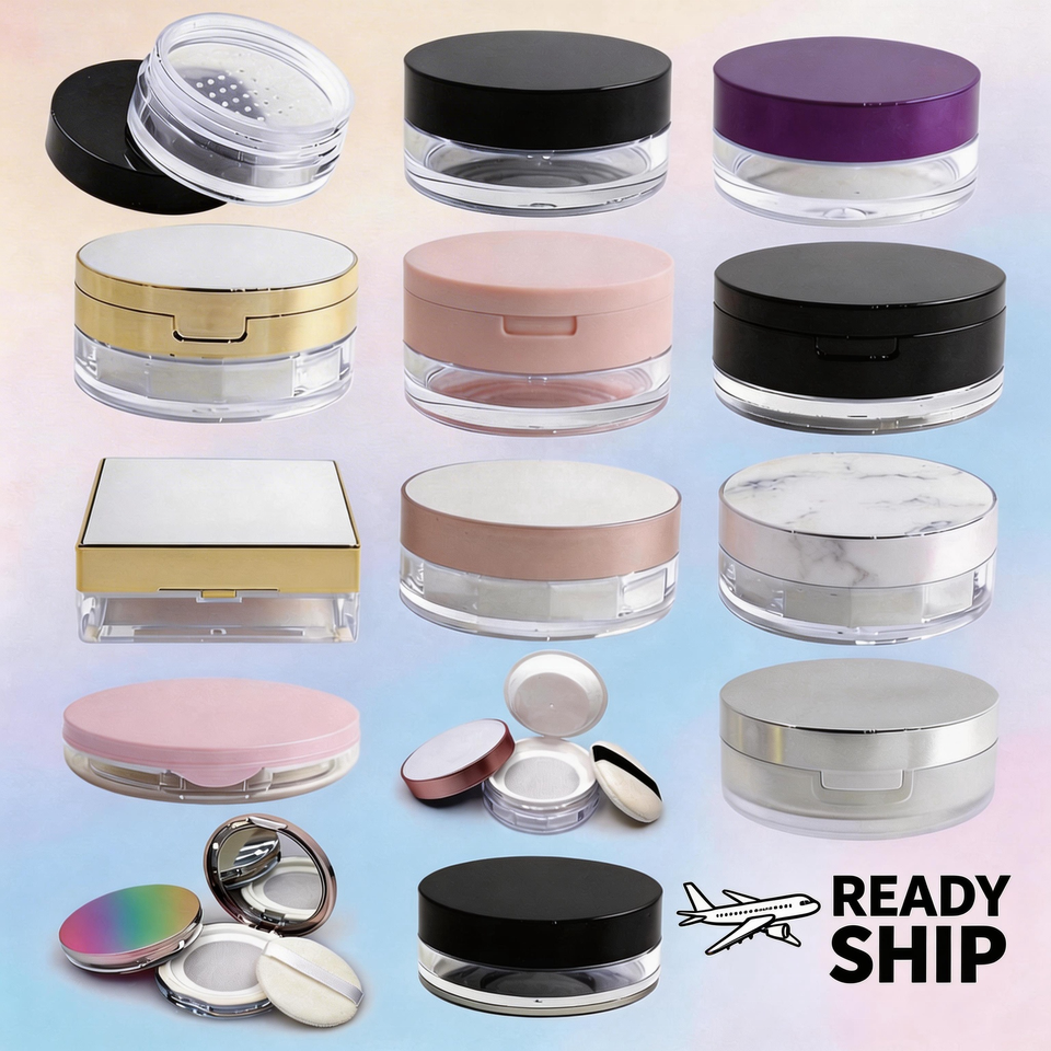 Boîte à poudre libre en plastique ABS écologique, prête à l'emploi, vide, pour poudre fixante, emballage cosmétique, avec houppette, personnalisable