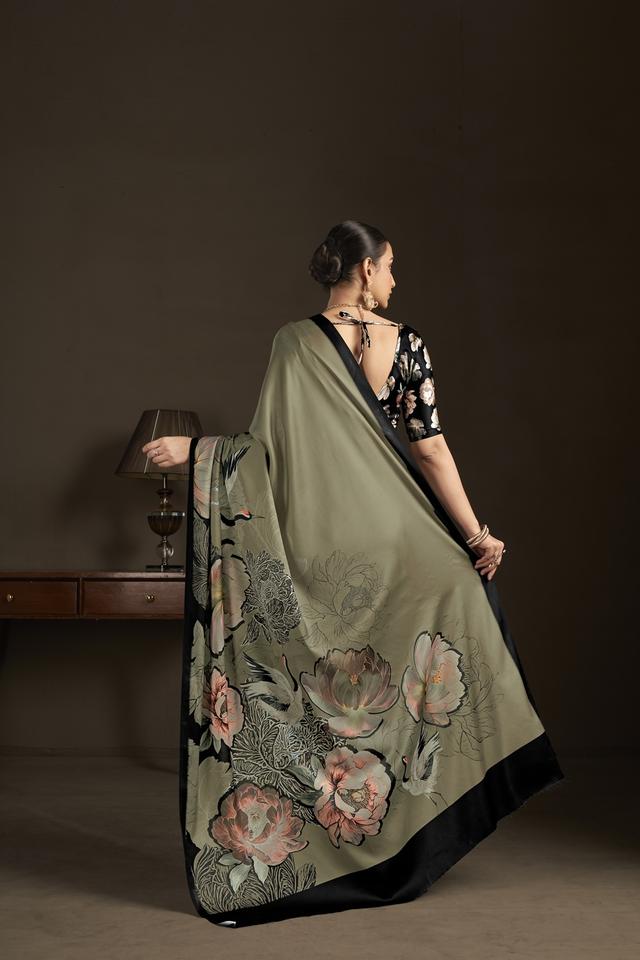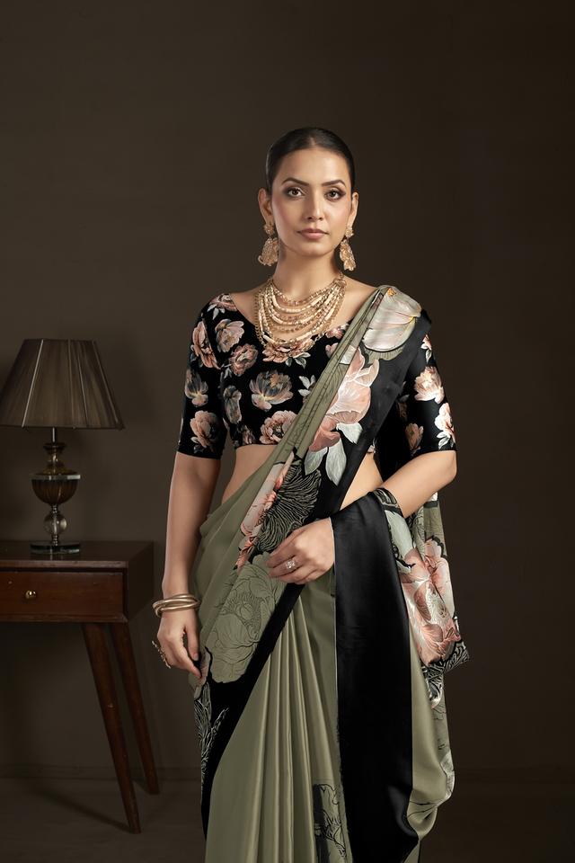 Sari prêt-à-porter et blouse cousue, sari indien en soie crêpe, imprimé floral, sari imprimé numériquement, design magnifique