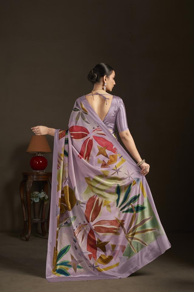 Sari prêt-à-porter et blouse cousue, sari indien en soie crêpe, imprimé floral, sari imprimé numériquement, design magnifique