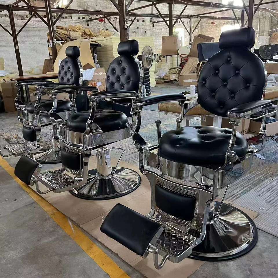 Chaise de barbier de style ancien en argent robuste, prête à être expédiée, chaise de salon, chaise royale, peut supporter 400 kg
