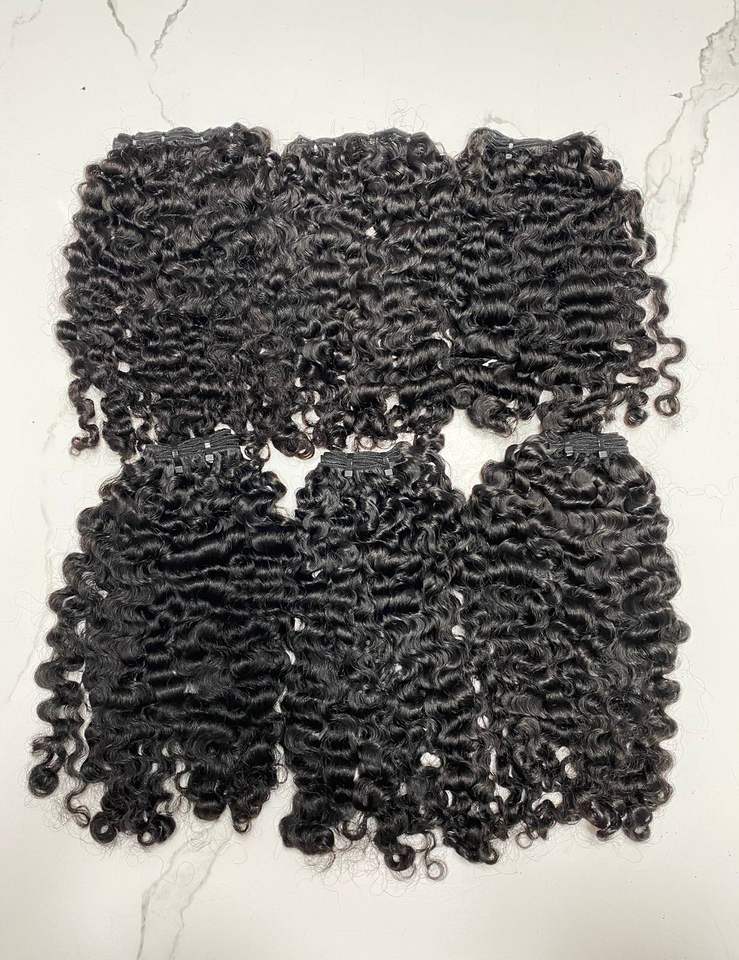 PRÊT À EXPÉDIER BRUT NON TRAITÉS CHEVEUX HUMAINS BOUCLES DOUBLE TRAME MACHINE À DOUBLE TRAME 18 POUCES