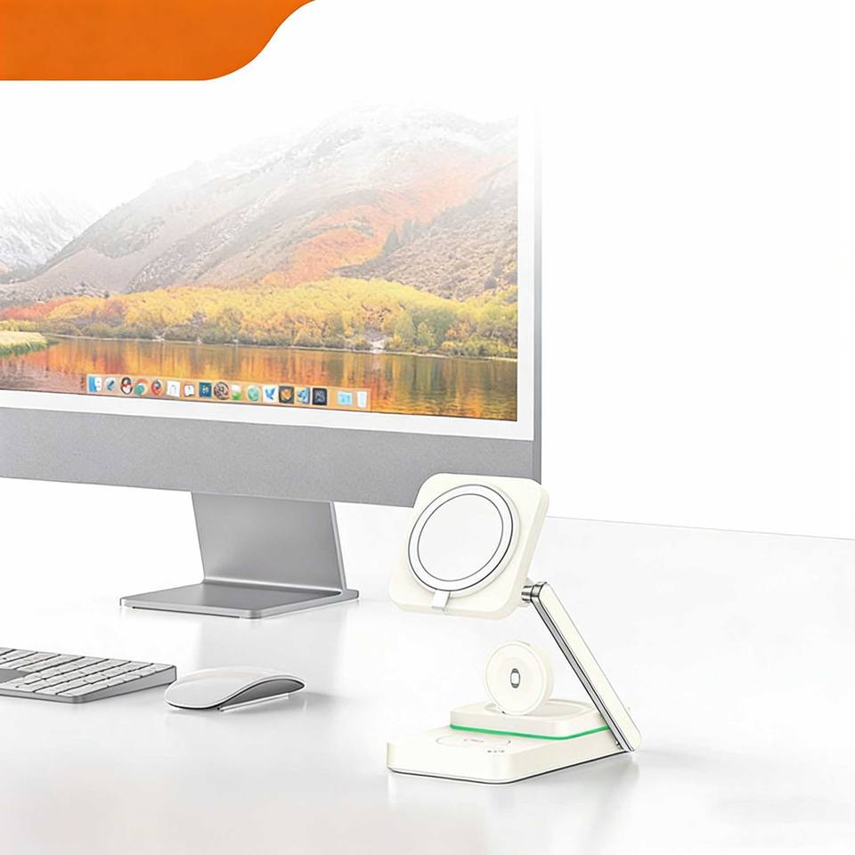 Chargement magnétique sans fil 3 en 1 + support pliable