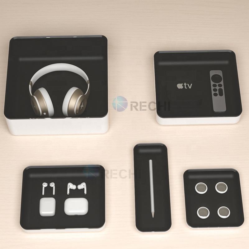 RECHI Vitrine de vente au détail pour écouteurs audio en acrylique transparent personnalisé pour écouteurs sans fil véritable Boîte de présentation de stockage en acrylique noir