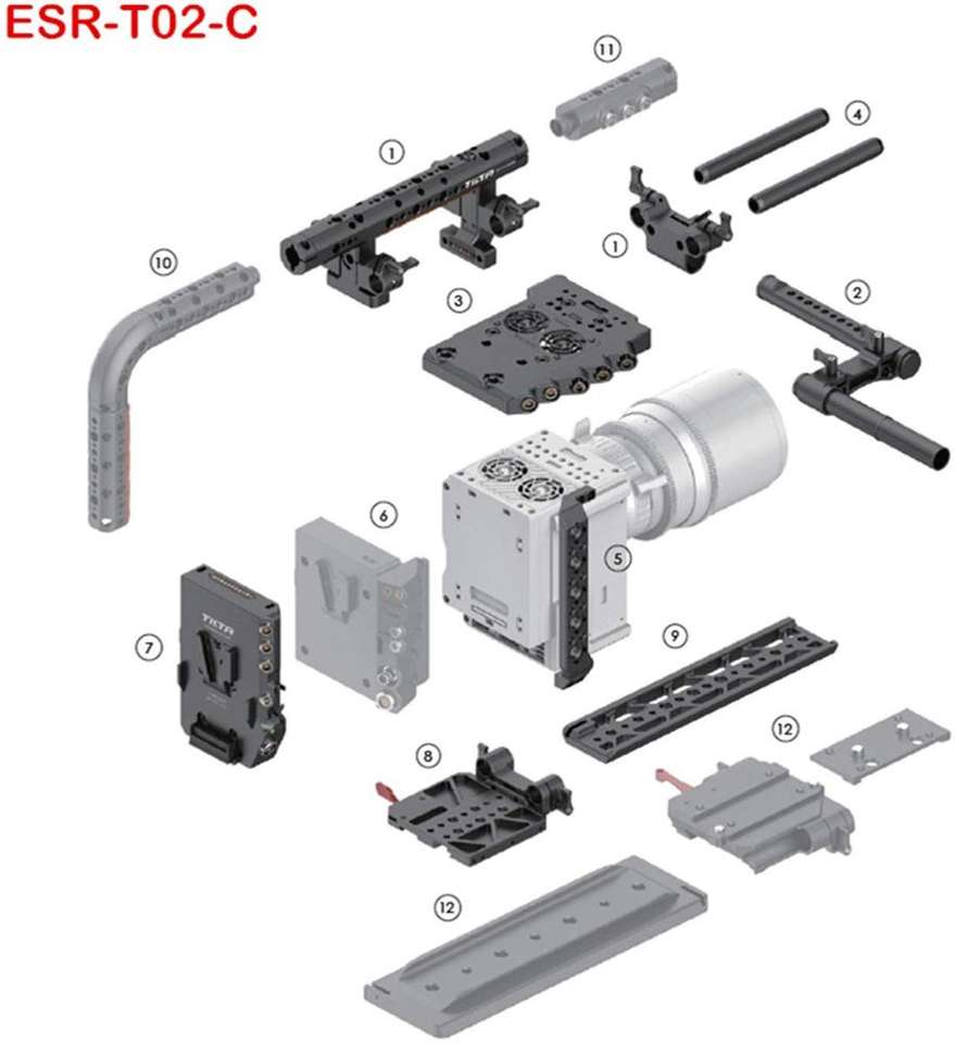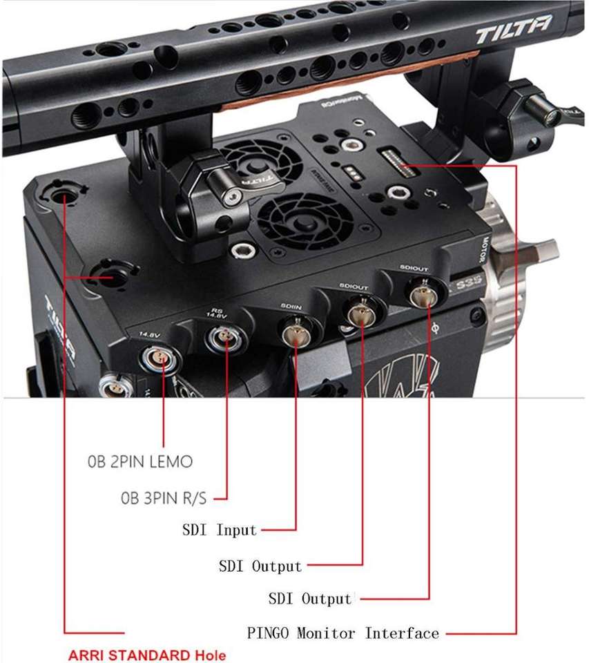 Cage RED DSMC2 ESR-T02-C avec plaque de base et poignée supérieure pour RED DSMC2 Raven/Weapon/Scarlet-W avec système d'alimentation SDI entrée/sortie