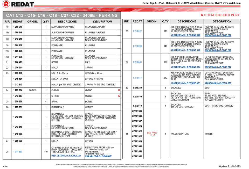REDAT CTRF9539 Groupe de buses d'injection de carburant diesel de qualité italienne complète pour moteur industriel ferroviaire marin Caterpillar