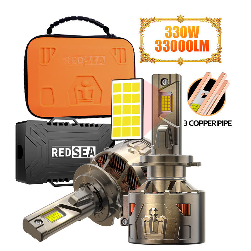 REDSEA prix d'usine R33 330W 100000 lumen phare led oem 3 Tube de cuivre H1 H4 H11 9005 9006 9012 Canbus H7 LED ampoule de voiture