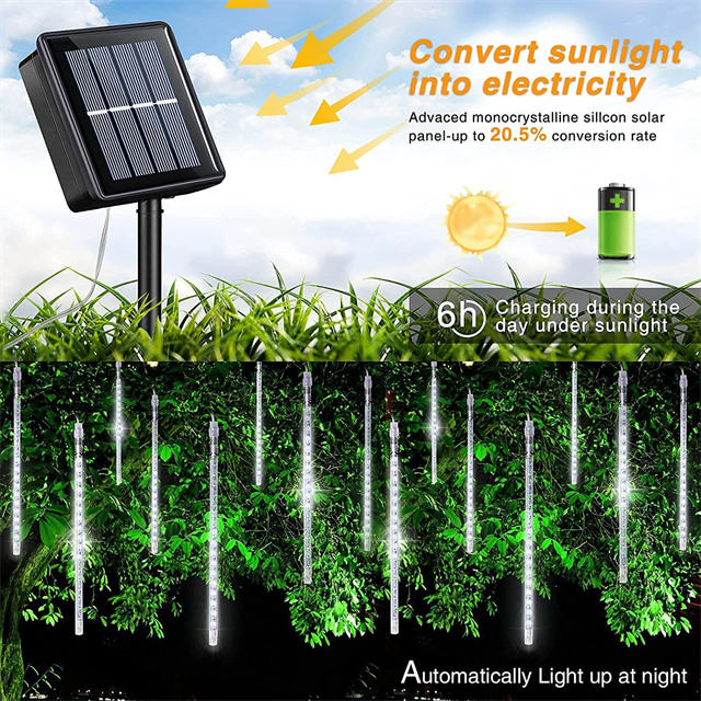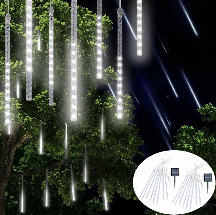REEHAND Guirlande Lumineuse Solaire 8 Tubes 288 LED Effet Pluie de Météores IP65 Dimmable 7,2 m pour Jardin, Terrasse, Mariages et Fêtes, Éclairage Extérieur