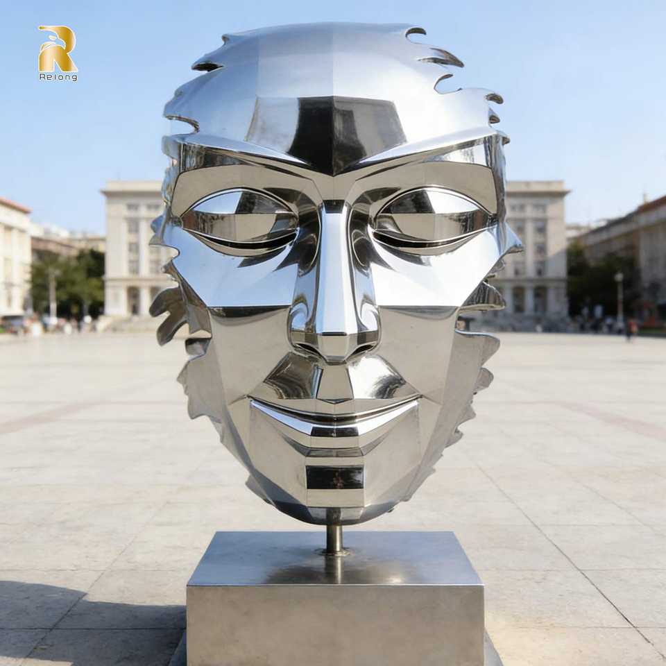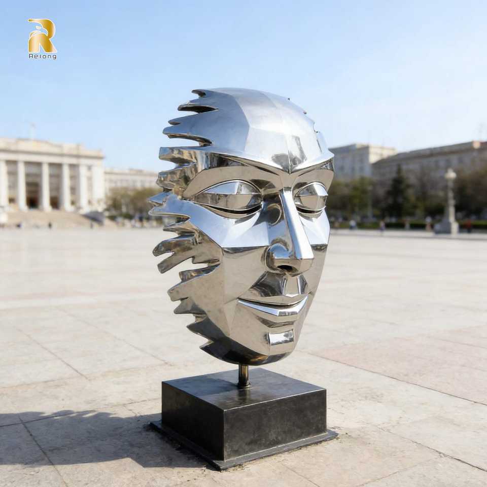 Sculpture de visage abstraite en acier inoxydable personnalisée RELONG pour la décoration d'art moderne en extérieur