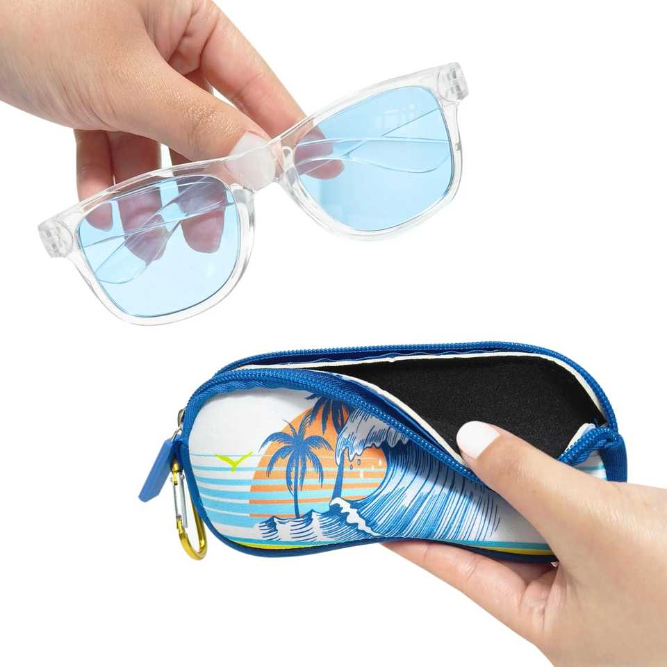 Échantillon de vente au détail H.E.R. Accessoires pour enfants : Étui à lunettes de soleil thème vague, protection UV, cool, thème surf, pour les 8 ans et plus, fabriqué en RPC