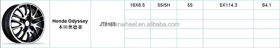 Jante en alliage de voiture multi-rayons sur mesure REW JT6185 16 pouces pour Honda, finition noir brillant, motif de goujons 5x114.3, jante en fonte