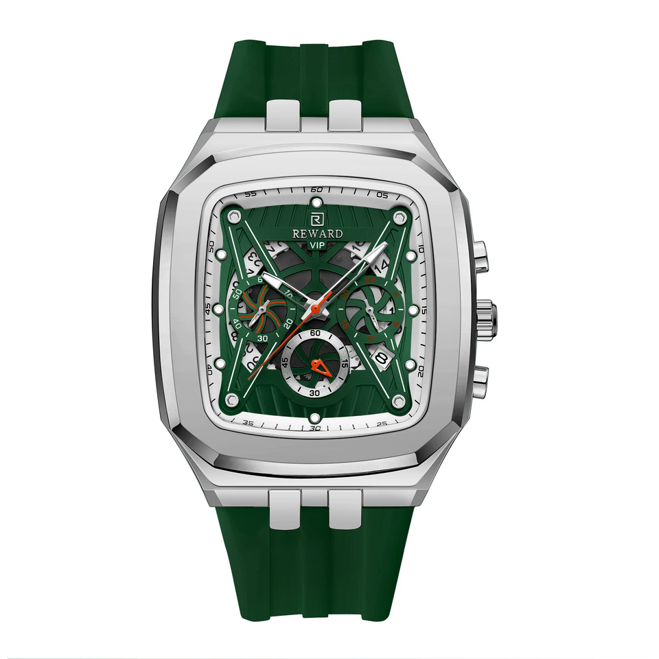 REWARD 832260 Montre à quartz pour homme Boîtier en alliage Pointeur en cristal Design rectangulaire tendance Calendrier Chronographe étanche Silicone