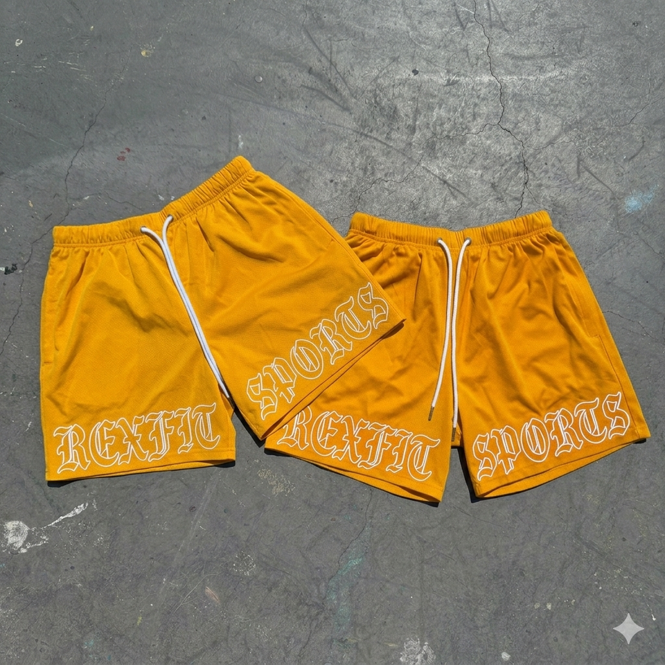 Shorts de basket-ball pour hommes REXFIT SPORTS, sur mesure, logo imprimé, haute qualité, coupe ajustée, en mesh, pour la course à pied et la gym.