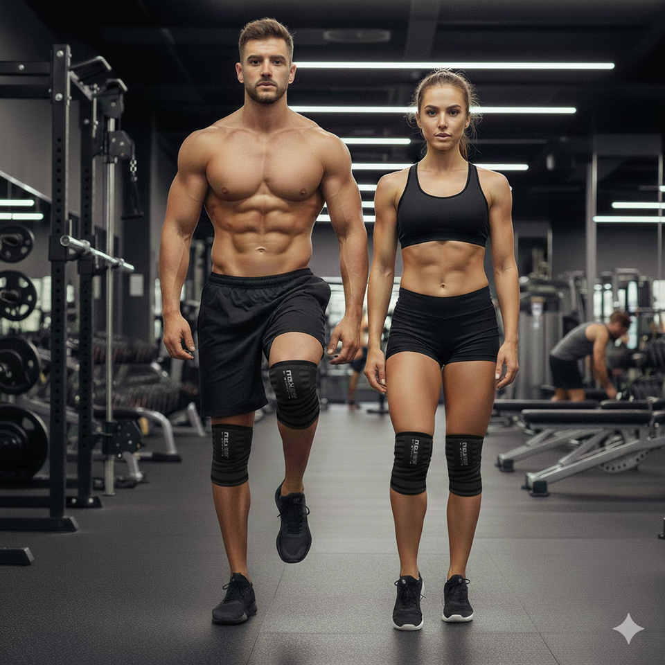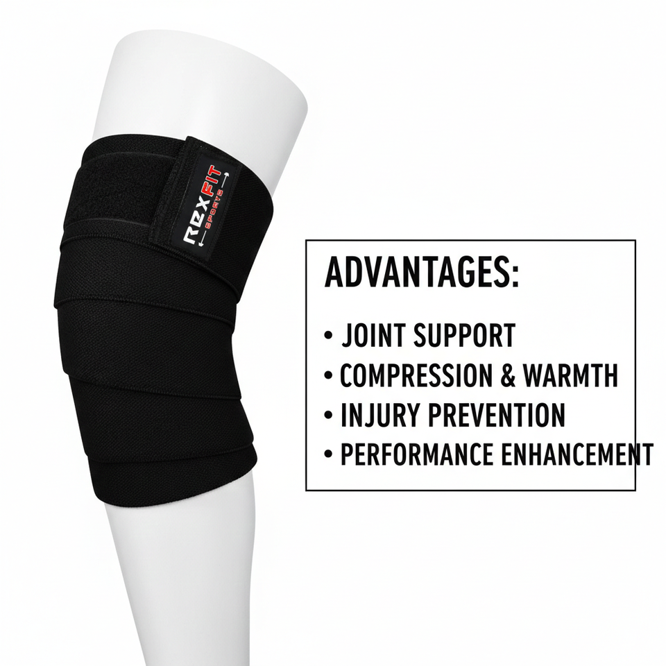 Bandes de compression élastiques pour genoux REXFIT SPORTS, pour la musculation et l'entraînement en salle de sport.