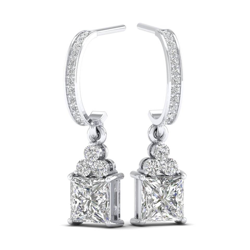 REYES Boucles d'oreilles pendantes en argent sterling 925 sur mesure, coupe princesse, 3,56 carats, moissanite, pour femmes, bijoux fins de luxe