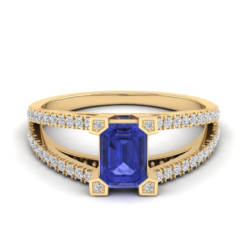 Bague de fiançailles REYES au design élégant en or massif 14 carats avec diamant certifié IGI, taille émeraude, 1 carat, pierre précieuse tanzanite, bague solitaire
