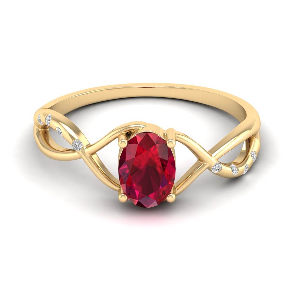 Vente directe d'usine REYES, bague en or massif 14 carats avec rubis ovale de 0,75 carat, bijoux pour femmes, moissanites rondes