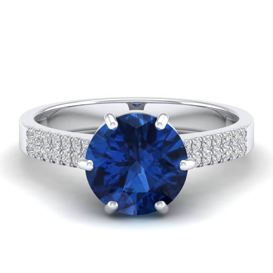 REYES Fine Jewelry Design classique Bagues à la mode en argent sterling 925 Moissanite Bagues rondes en saphir bleu 2.75Ct