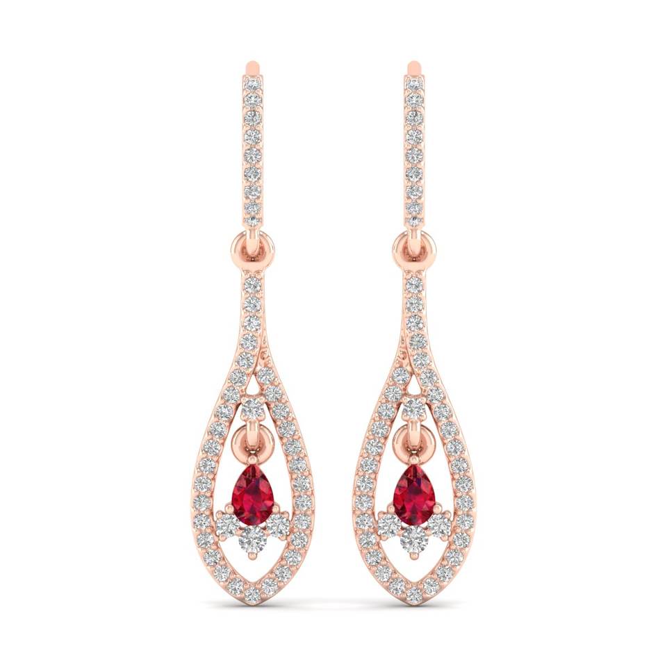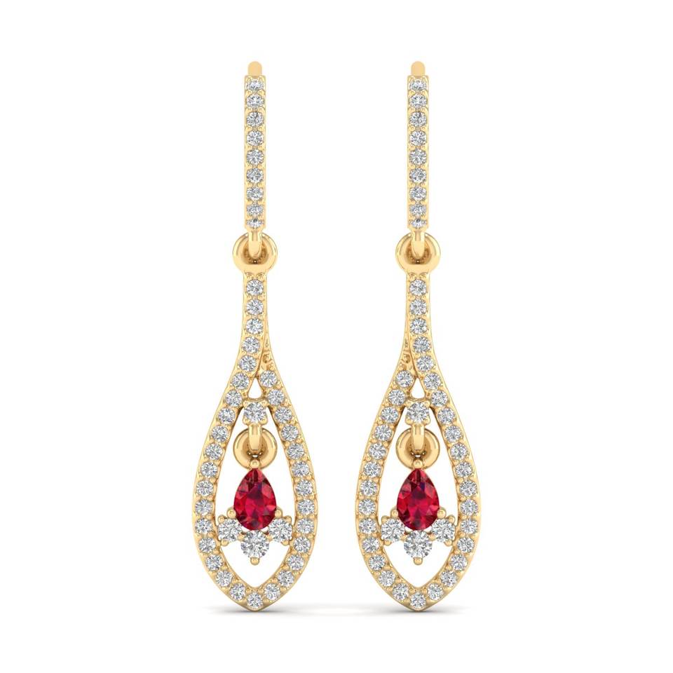 REYES Déclaration Boucles d'oreilles pendantes en or 14K avec diamant Dainty Pear Cut 0.3 Ruby Gemstone Wedding Party Wear Fine Jewelry