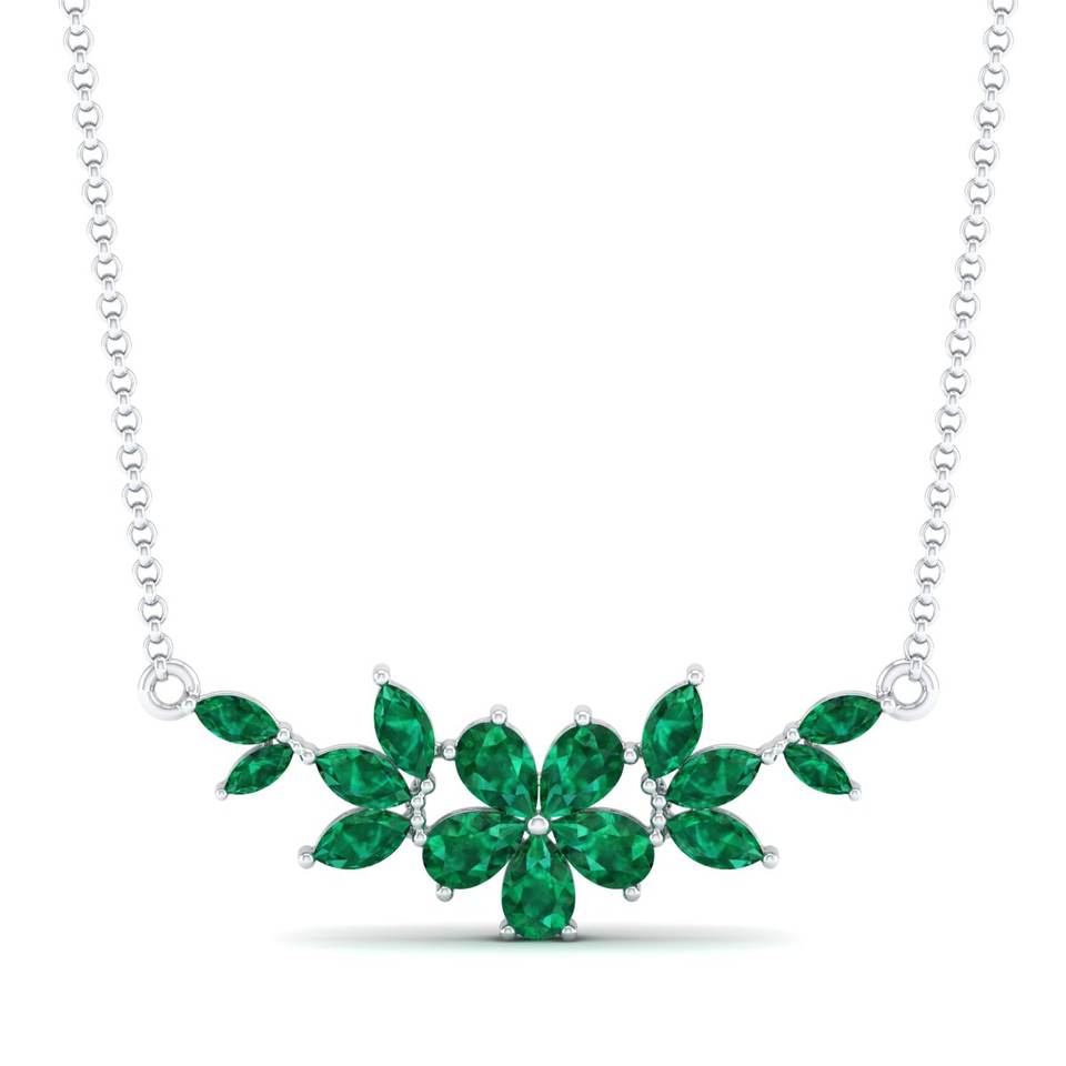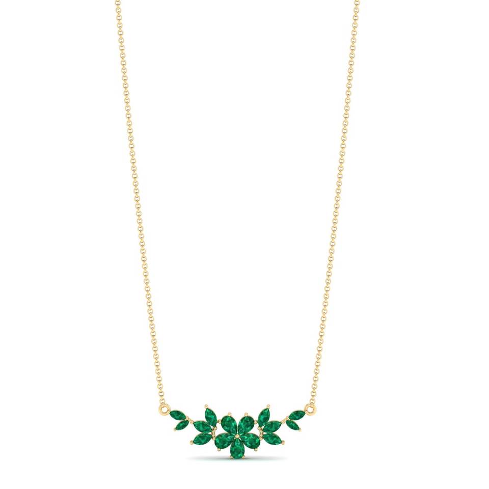 Colliers REYES au design unique en or massif 14 carats avec pierre précieuse émeraude de 3,87 carats pour femmes, bijoux fins de luxe pour mariage et soirée