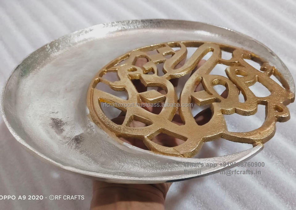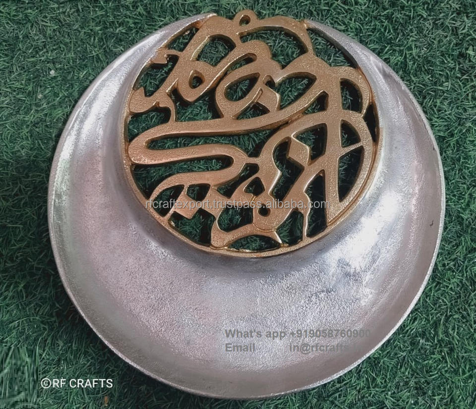 RF Crafts Plateau de service en bois de haute qualité pour le Ramadan et l'Aïd Plateau rond de style artistique pour la décoration intérieure pour les dattes et les sucreries