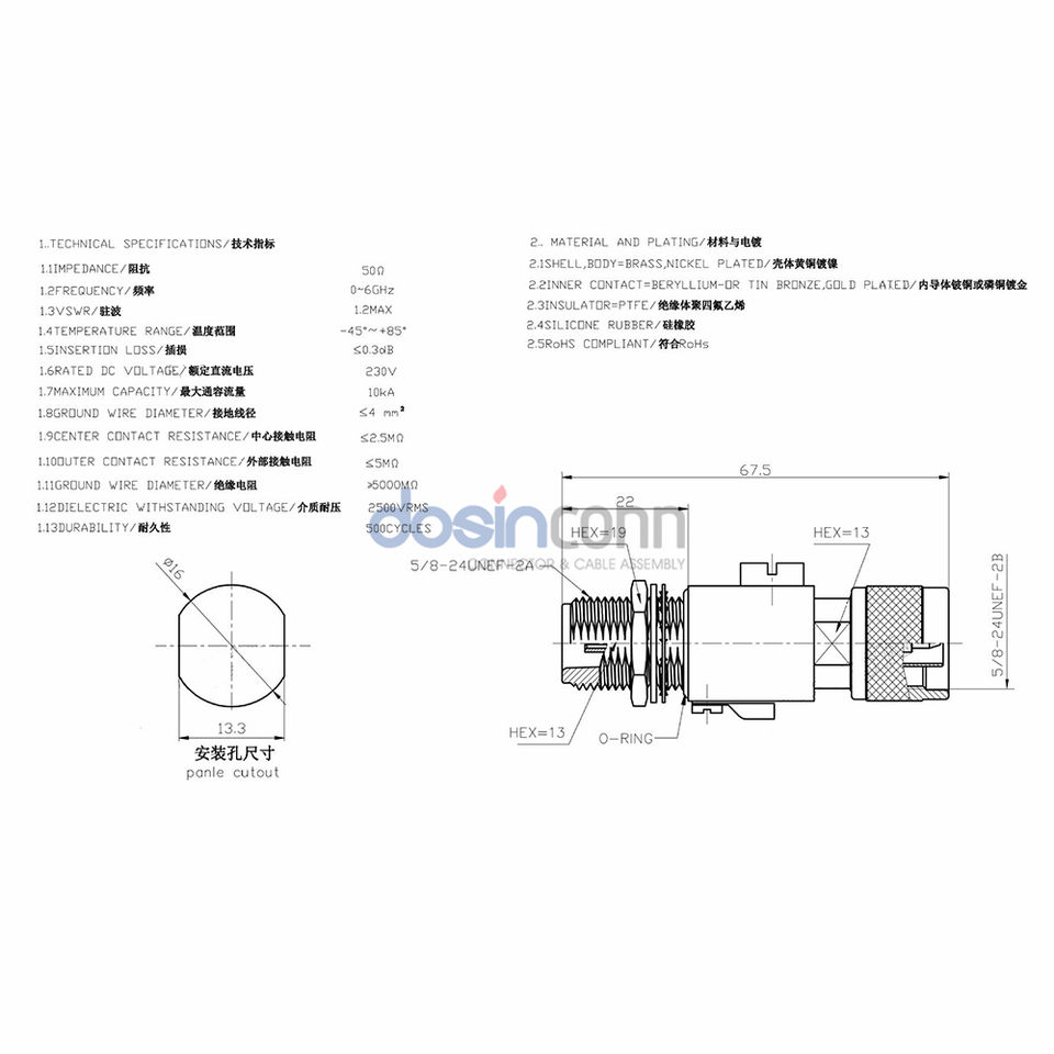 Matériau du conducteur interne:Cuivre-mercure ou cuivre phosphoreux, plaqué or