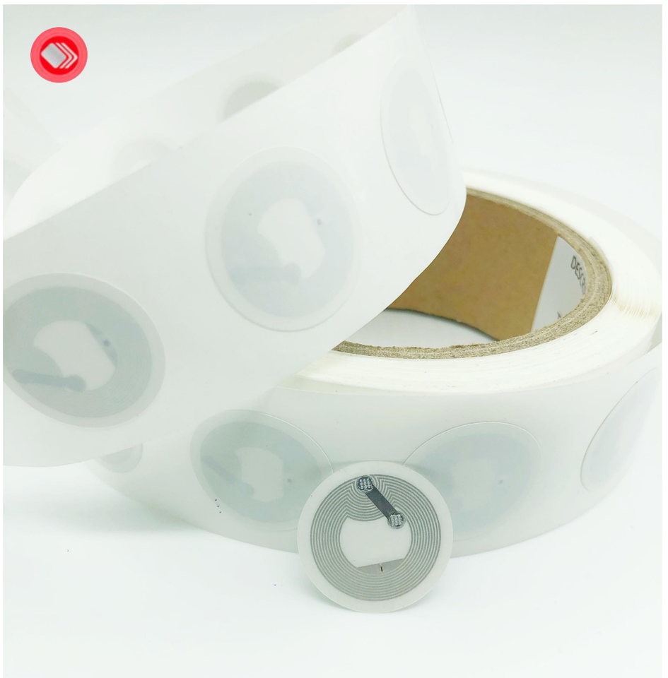 Étiquette RFID circulaire 13,56 MHz, carte de contrôle d'accès, papier enduit PET, étiquette NFC, étiquette RFID anti-déchirure, étiquette RFID pour vin, étiquette RFID fragile
