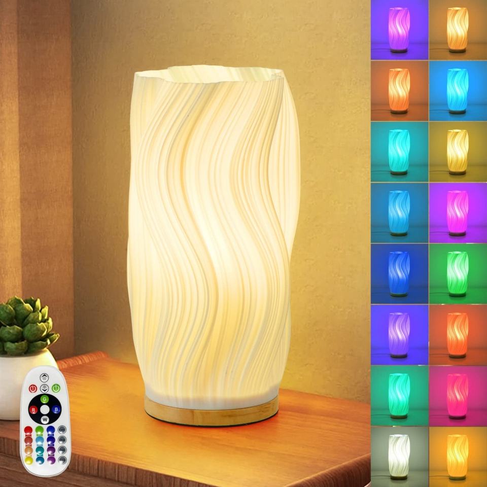 Lampe de table en PLA imprimée en 3D RGB avec télécommande, alimentation AC/DC, culot d'ampoule E14