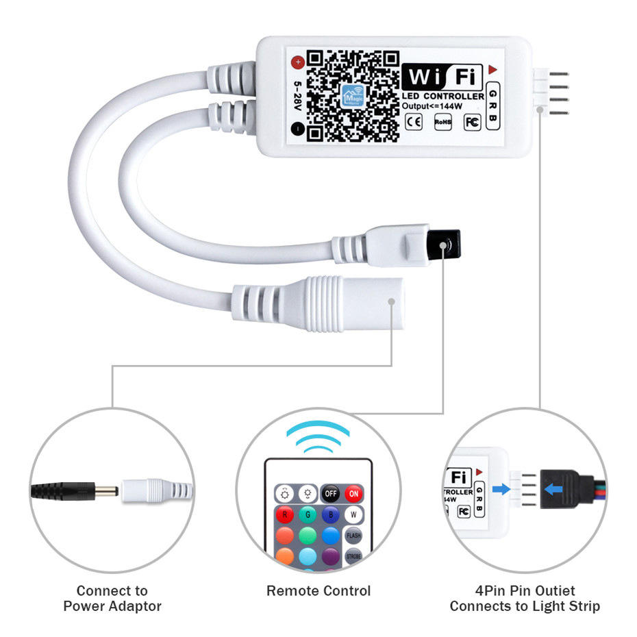 Connecteur RVB Contrôleur Led Intelligent Vifi Télécommande Vocale Fonctionne Avec Alexa Google Home App Magichome COMMUTATEUR MANUEL