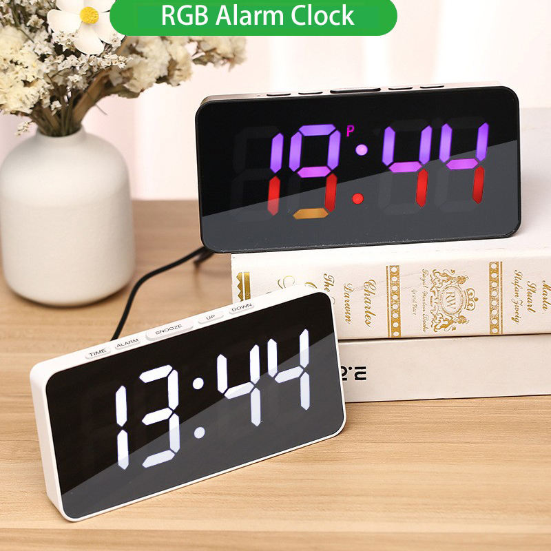 Réveil numérique RGB avec lumières d'ambiance changeantes de couleur, alarmes, fonction snooze, réglage de la luminosité, horloge de table pour chambres, bureau à domicile, décoration de bureau