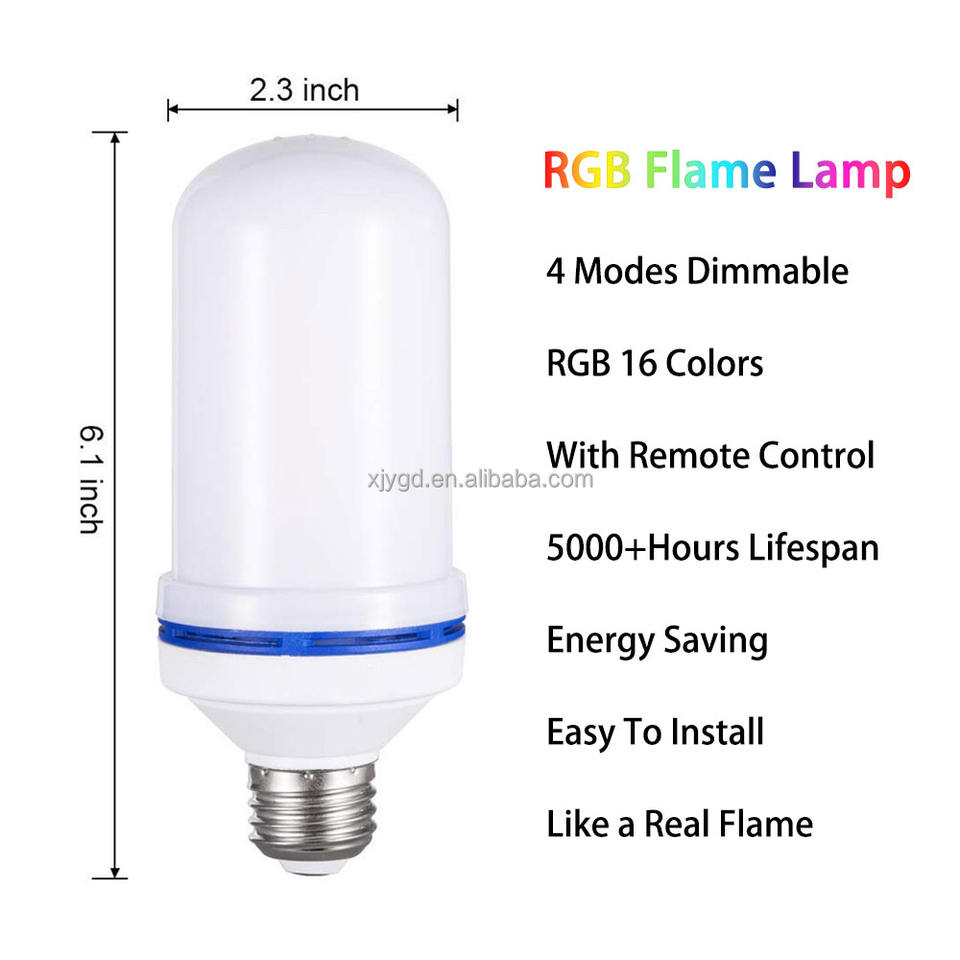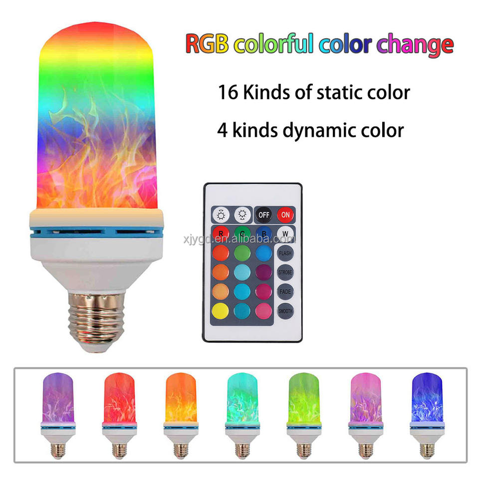 Ampoule LED RGB Flame avec télécommande scintillante multicolore pour jardin patio camping