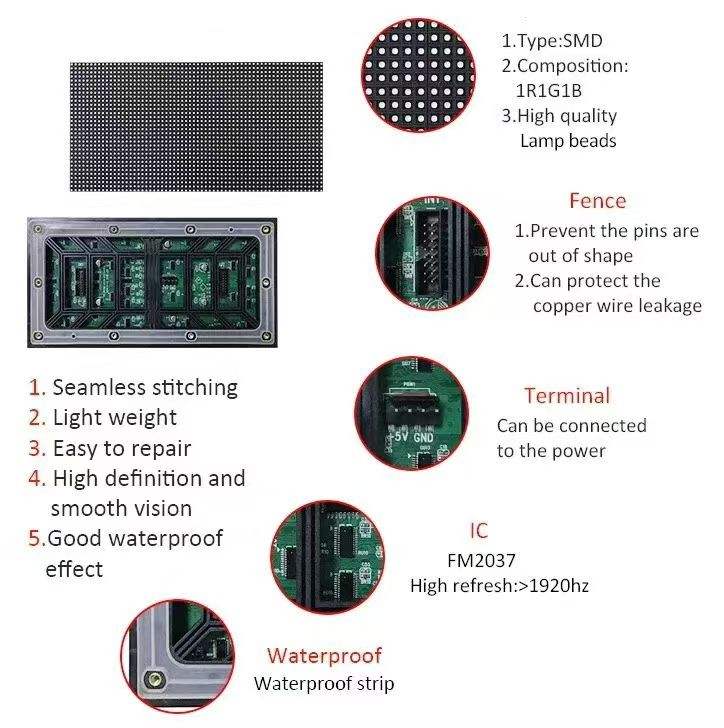 Module d'affichage LED programmable RVB couleur pleine P4 pour panneau de messages défilant extérieur/intérieur 320x160mm Pixels