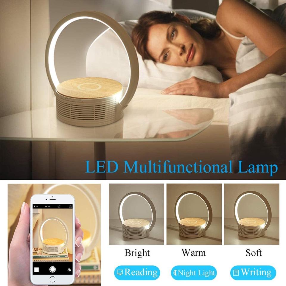 Haut-parleur chargeur sans fil LED RVB avec lumière blanche chaude Trois angles de cadre de lampe réglables Alarme de chevet pratique Boombox