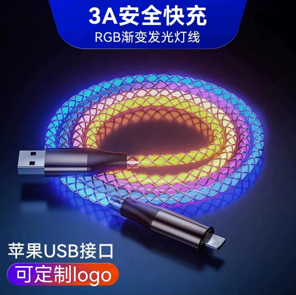Câble de données lumineux RGB, câble de données de streaming à charge ultra-rapide, adapté aux câbles de données Apple 17, vente en gros