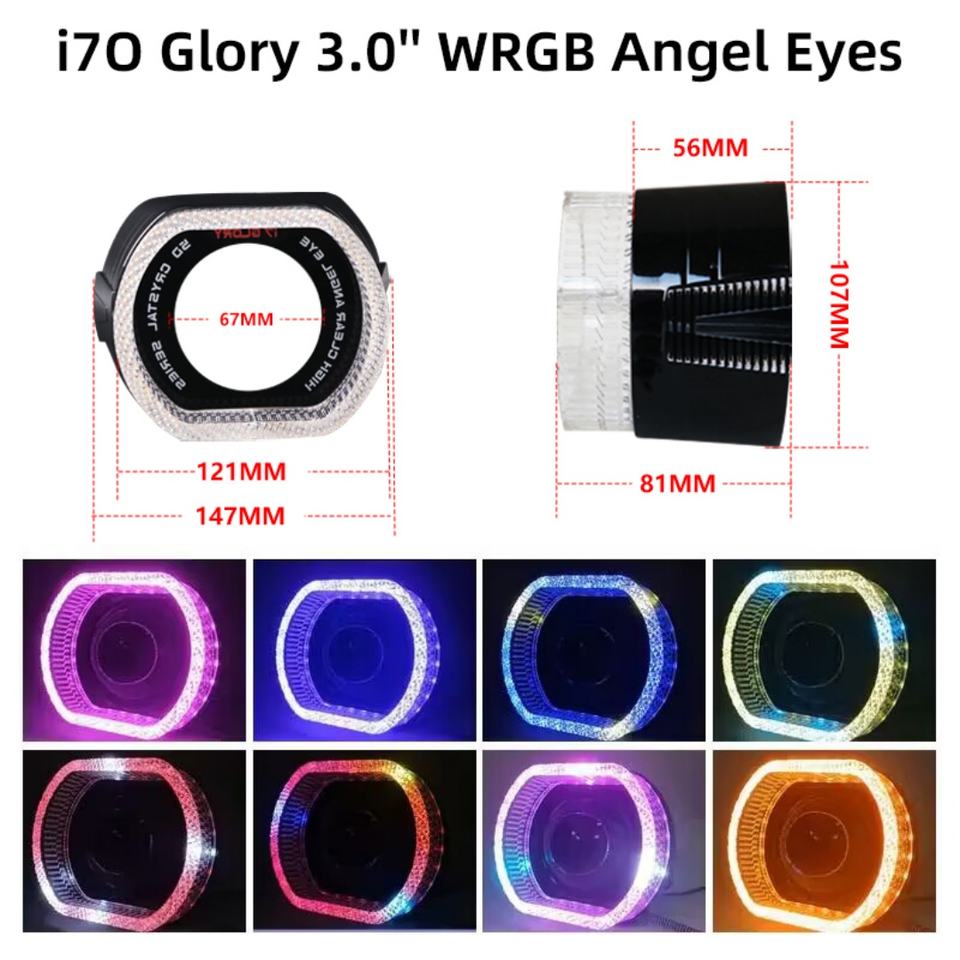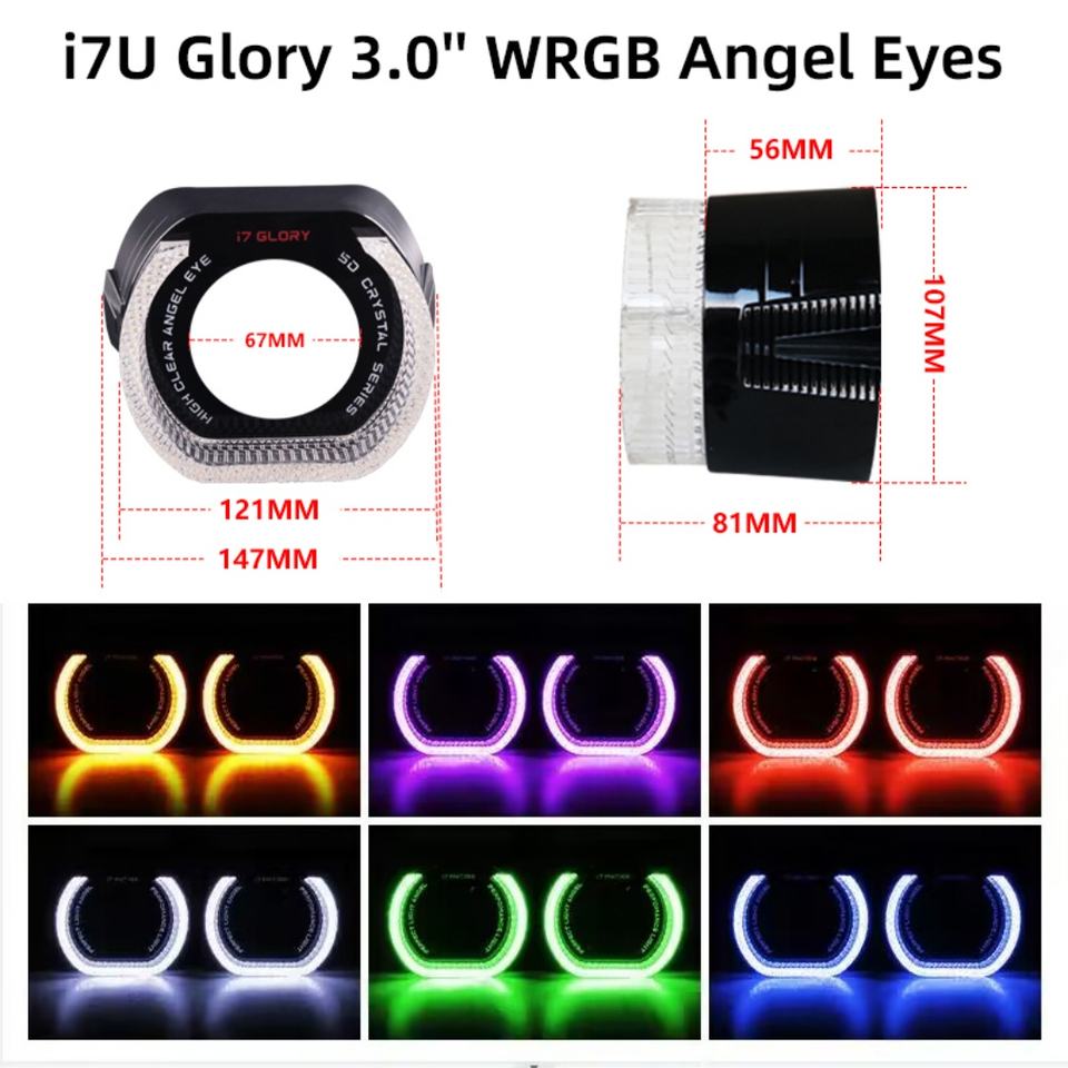 RGB SANVI New Model LED Angel Eyes Projector Lens White Yellow Rgb Colorful Ring Light Shrouds Car Accessories with 12V Voltage